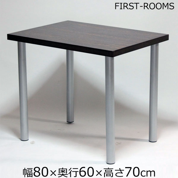 パソコンデスク アジャスター付 幅80×奥行き60×高さ70cm ダークブラウン(シルバー脚 丸脚)【ハチロクサンテンゴ】