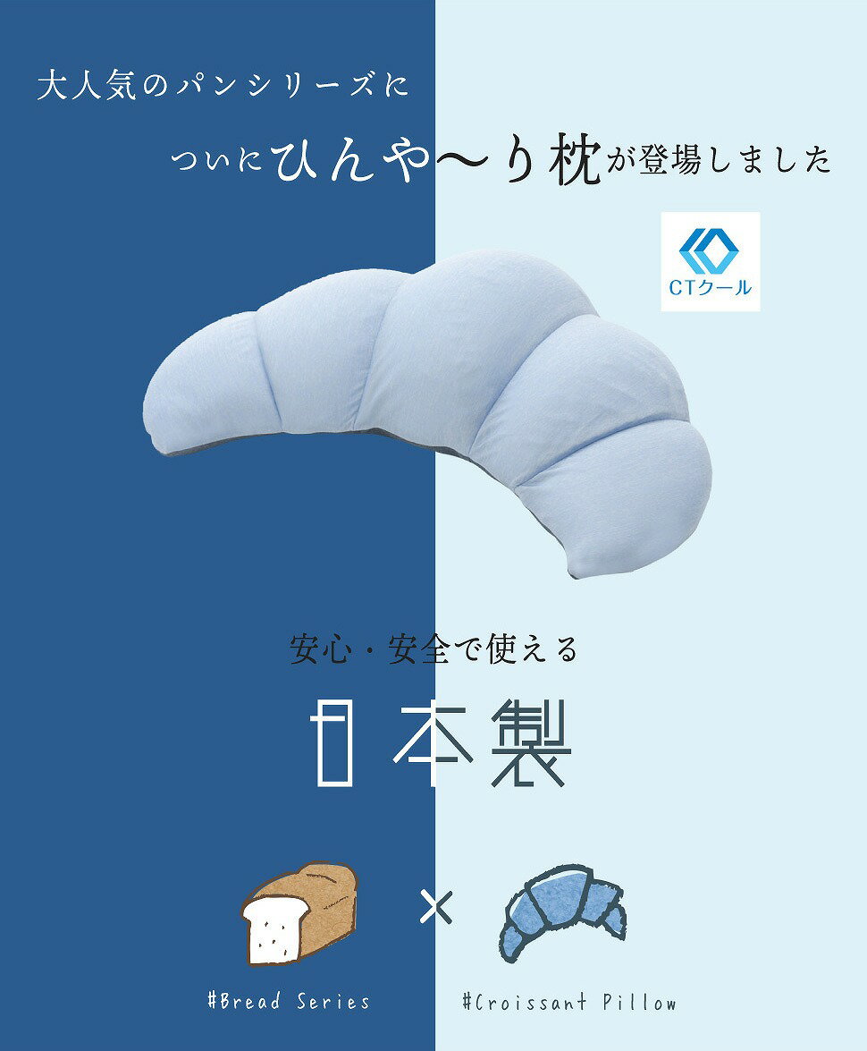 商品仕様 【品名】ひんやりクロワッサン枕 【サイズ】 340×680×150mm 【材質】 構造部材: 【中材】発泡ポリスチレンビーズ 【本体生地】ポリエステル88%・ポリウレタン12% 【カバー生地】複合繊維(ナイロン/ポリエステル)51%、ポリエチレン49% 【製造国】日本製 ※カバーは輸入品 おすすめ ひんやりクロワッサン枕 カバーは冷感素材を使用し、接触冷感。