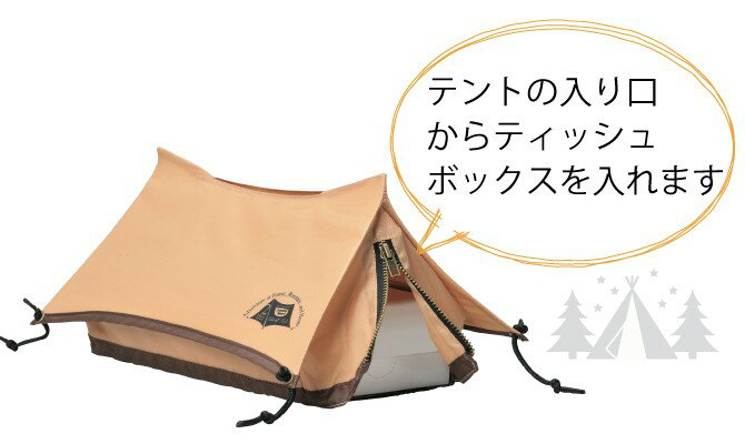 2ポールテントモチーフのティッシュボックスケースです テントの入り口がティッシュボックスの入り口になっています。