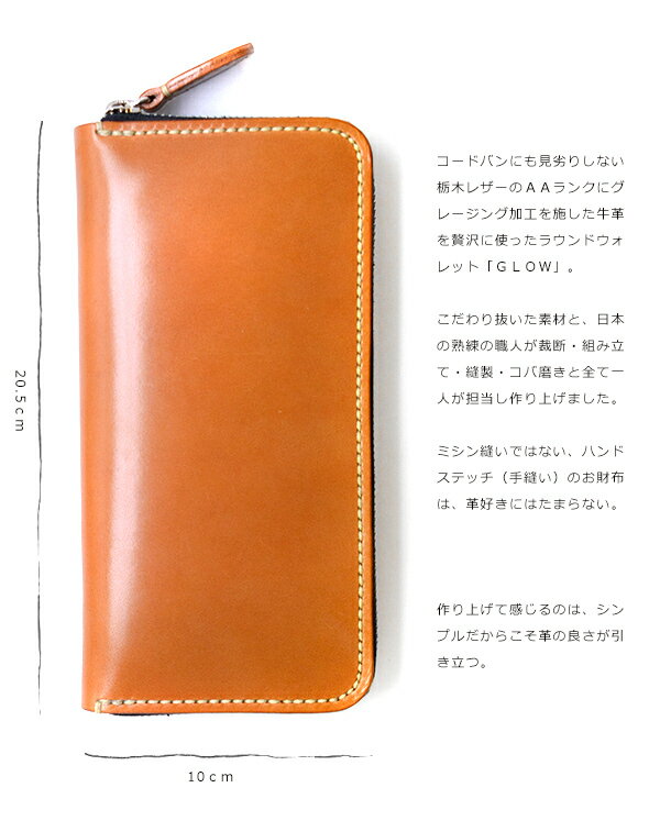 長財布 メンズ レディース 本革 ラウンドファスナー ブランド CROSS ROADS クロスロード【送料無料】グロー ラウンドウォレット 栃木レザー 牛革 牛皮 本皮 手縫い ハンドメイド 財布 さいふ サイフ 長サイフ かっこいい 日本製 国産