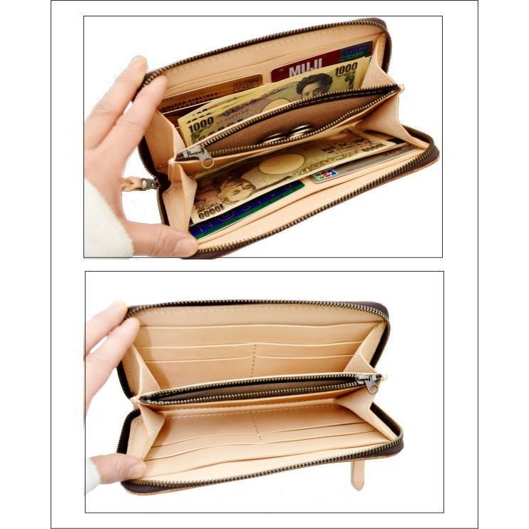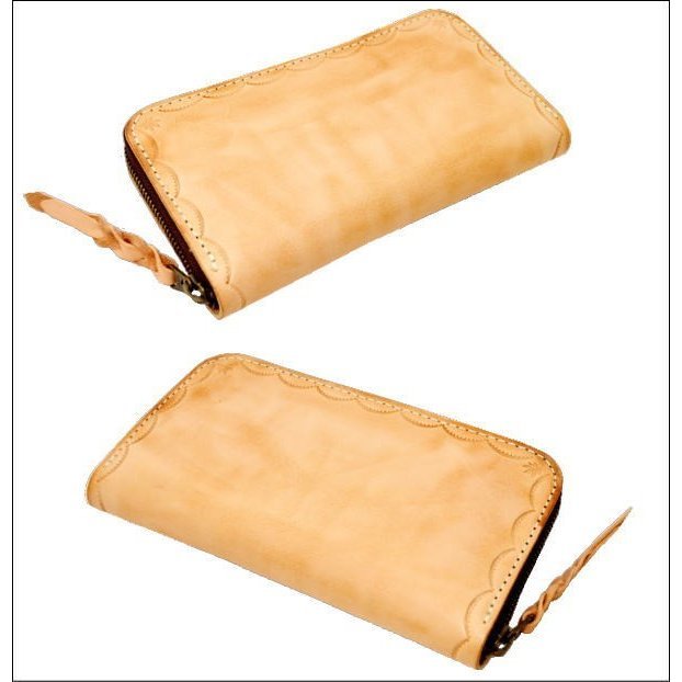 栃木レザー ヌメ革 ラウンドジップ 長財布 メンズ レディース フレームスタンピング 自分色に育ててください。