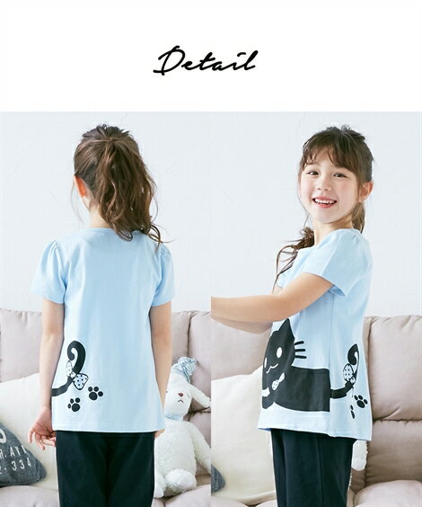 綿100% 前後ねこちゃんプリント半袖パジャマ(女の子 子供服・ジュニア服) ニッセン nissen サックス+黒 ラベンダー+黒 カラー サックス+黒/ラベンダー+黒 サイズ 110/120/130/140/150/160 備考 単位:cm ※サイズの誤差は多少発生します。